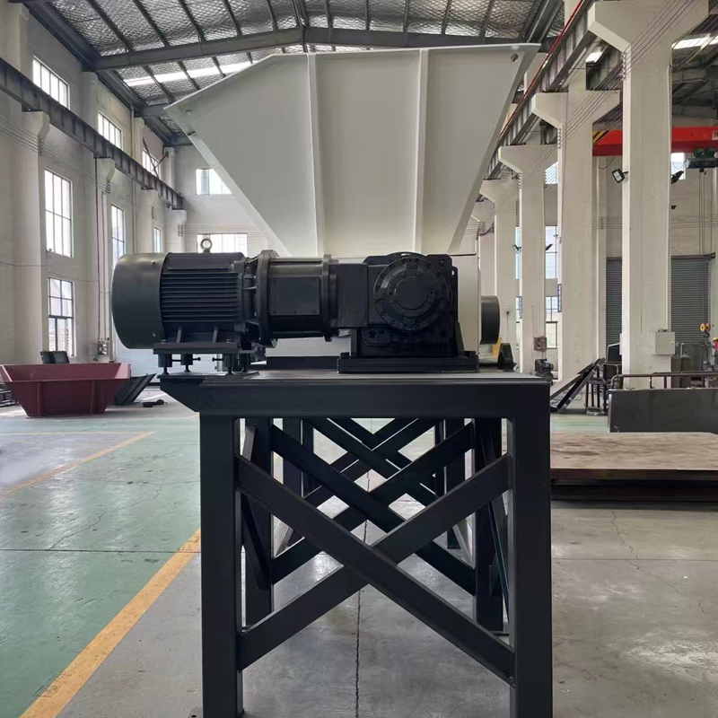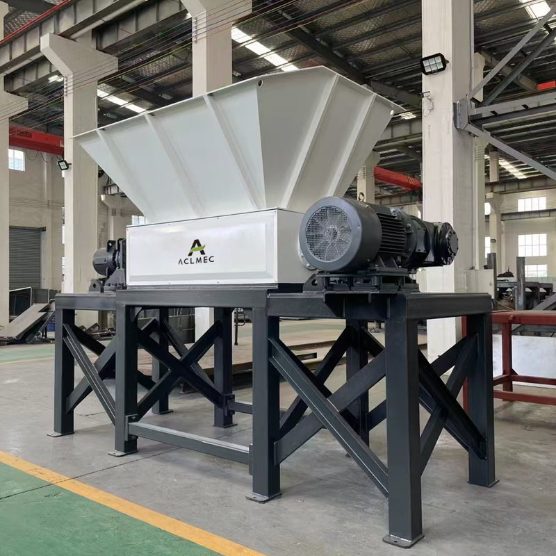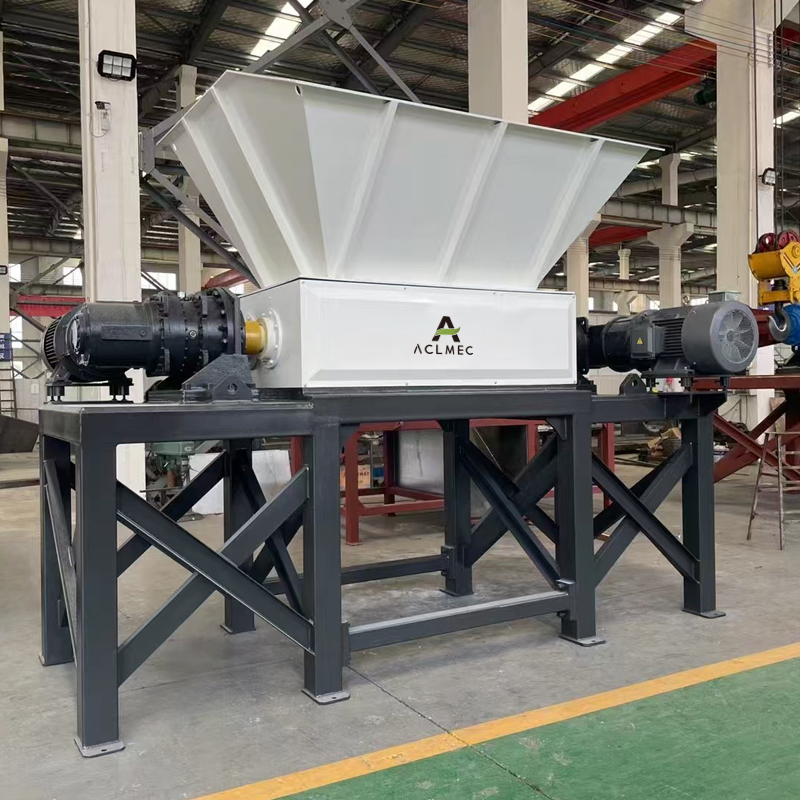 A Broyeur à double arbre pour déchets industriels (modèle 800)Il s'agit d'un type de broyeur industriel conçu pour la réduction de matériaux volumineux. Il utilise deux arbres parallèles équipés de lames (coupeurs) qui tournent lentement et puissamment pour déchirer, cisailler et broyer les matériaux encombrants en morceaux plus petits et plus faciles à manipuler.