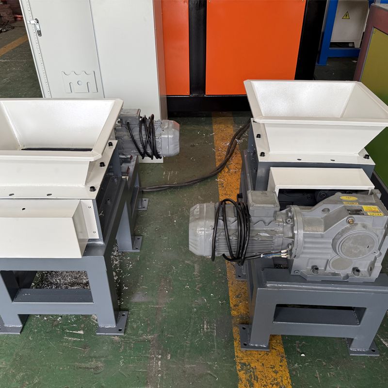Comparé aux grands broyeurs, Broyeur à double arbre super mini (modèle 300, un moteur) Il est plus compact et convient aux environnements de travail à espace limité. Il est adapté aux ateliers, laboratoires ou opérations de recyclage à petite échelle de petite taille.